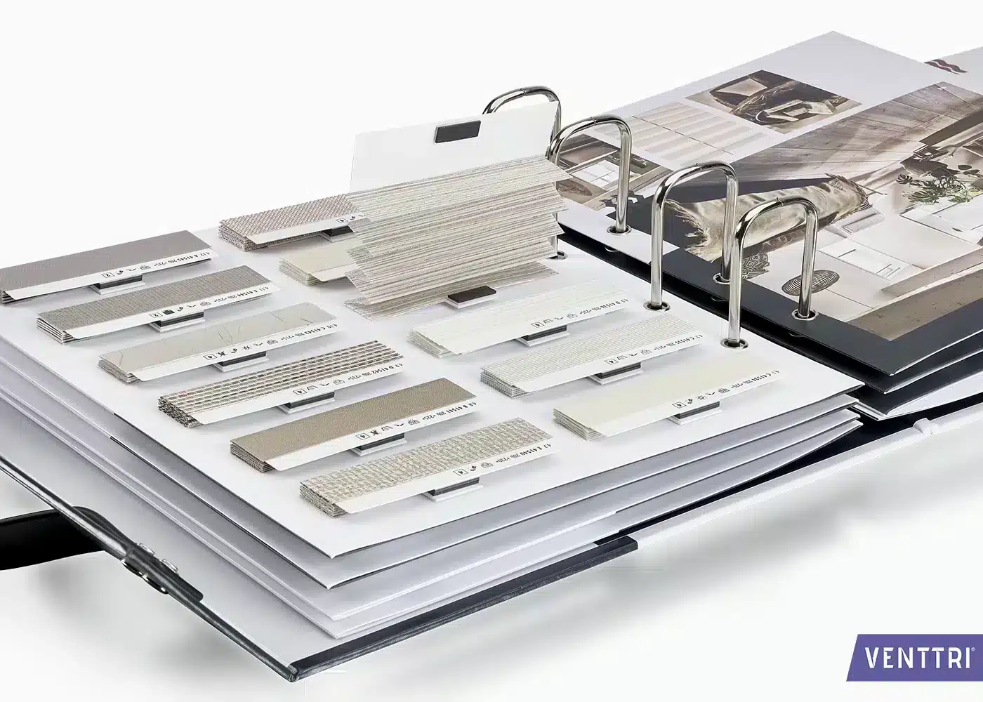 Diese luxuriöse Präsentationsmappe, gefüllt mit Plisseegardinmustern, verfügt über einen stabilen Umschlag, der über den Griff fällt. Der Umschlag ist am Griff mit Magneten befestigt, sodass Sie die Mappe leicht wie einen Koffer am Griff tragen und ordentlich präsentieren können. Die Innenseite der Mappe ist mit einer Einstecktasche ausgestattet, in die Informationsblätter oder lose Muster eingelegt werden können. In der Mappe befindet sich eine komplette Kollektion von Plisseemustern, die ordentlich in einer Reihe mit Magneten fixiert sind. Die Muster bestehen aus einer Schicht gefaltetem Stoff, die wie ein Akkordeon (Zickzack) aufgefaltet werden kann. Diese Falttechnik wird auch auf die Plisseegardinen selbst angewendet. Mit dieser Präsentationsmappe wird das Produkt auf die richtige Weise präsentiert!