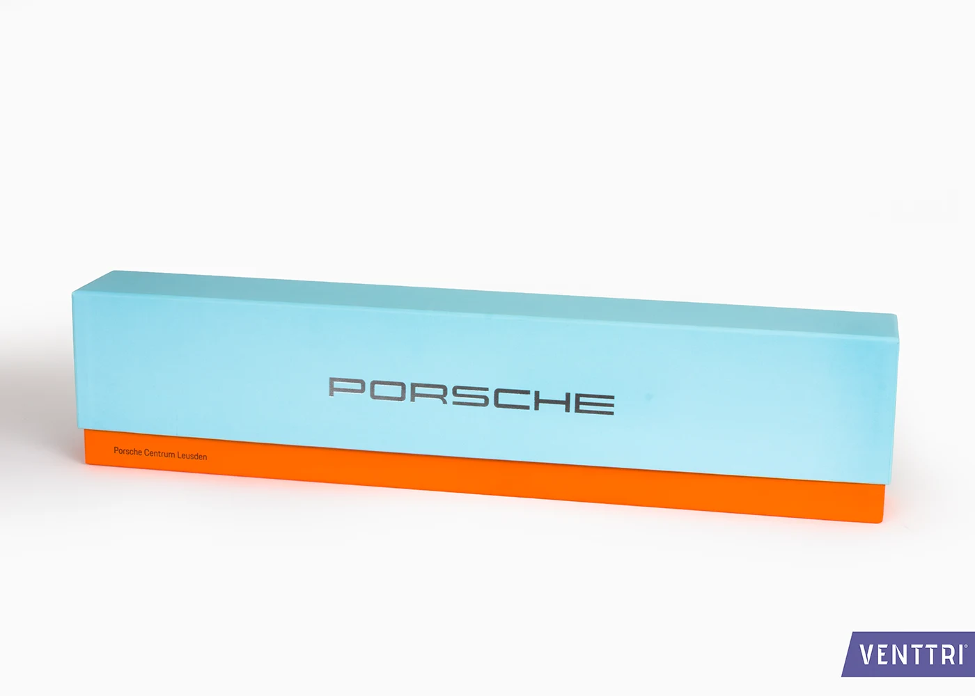Für Porsche entwickelte Venttri eine exklusive Box mit Deckel – ideal als hochwertige Präsentationsverpackung für Zubehör oder Dokumentationen. Die Basis und der Deckel bestehen aus robustem schwarzem Karton und sind mit goldfarbenem Papier kaschiert, was der Box eine luxuriöse Ausstrahlung verleiht. Das Logo ist edel mit Goldfolie veredelt und setzt einen strahlenden Akzent.