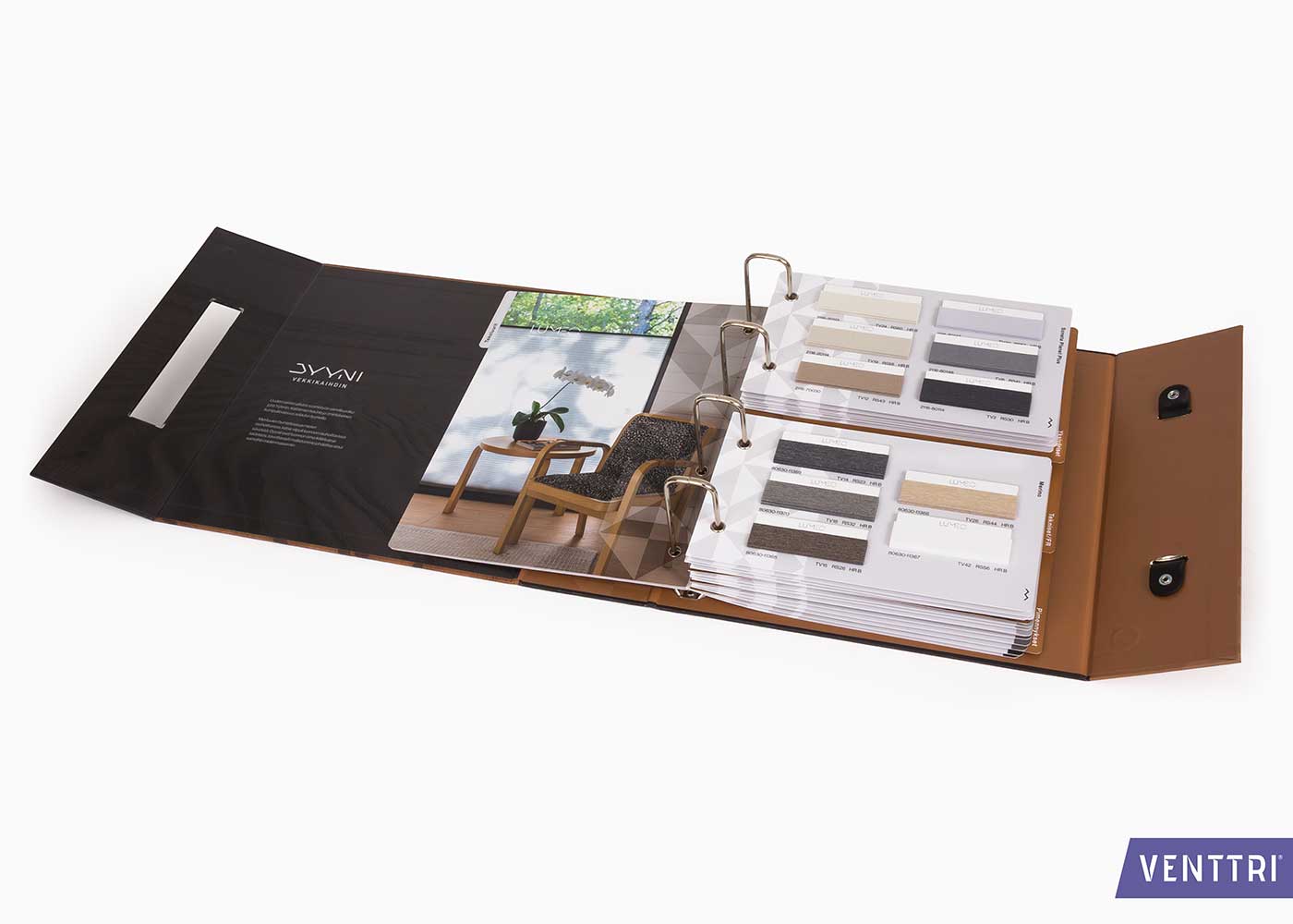 Für diesen Kunden entwickelte Venttri ein hochwertiges Musterbuch mit Registerseiten, in dem Materialien übersichtlich und benutzerfreundlich präsentiert werden. Dieses maßgeschneiderte Präsentationsprodukt wurde mit Fokus auf Detail, Langlebigkeit und Ausstrahlung konzipiert.