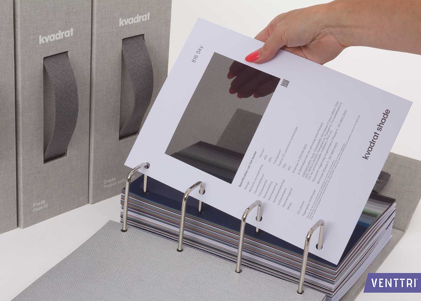 Für Kvadrat haben wir eine stilvolle Serie von Musterbüchern realisiert, in der Materialien und Stoffe übersichtlich und repräsentativ präsentiert werden. Diese Sammlung besteht aus vier Büchern und bildet zusammen eine komplette Präsentation für Sonnenschutz und Fensterdekoration.