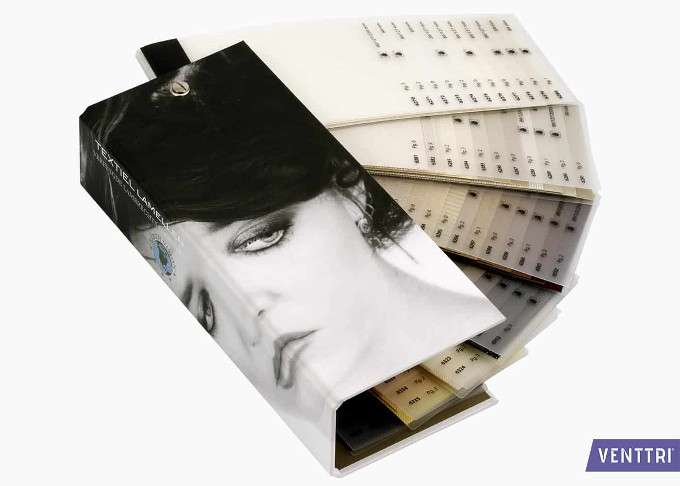 Eine Musterkollektion für Fensterdekoration, bestehend aus 6 Musterhängern in einer übersichtlichen Box. Jeder Musterhänger enthält einen Teil der Musterkollektion. Die Musterhänger sind in verschiedenen Ausführungen erhältlich. So können wir unter anderem einen Musterhänger mit Buchschrauben, einer Mechanik oder einem separaten Klicksystem liefern, mit dem Sie jedes Muster einzeln herausnehmen können. Für jede Kollektion bieten wir Ihnen die passende Lösung. Da sowohl die Aufbewahrungsbox, als auch die 6 separaten Musterhänger mit demselben Vollfarbdruck versehen werden, entsteht eine einheitliche, schicke Präsentation. Die Musterhänger können einzeln aus der Box genommen werden. Auf diese Weise können die verschiedenen Kollektionen in handlichen kleinen Mappen präsentiert werden. Die Box verfügt über ein zusätzliches Fach für die Aufbewahrung eines zusätzlichen Ordners.
