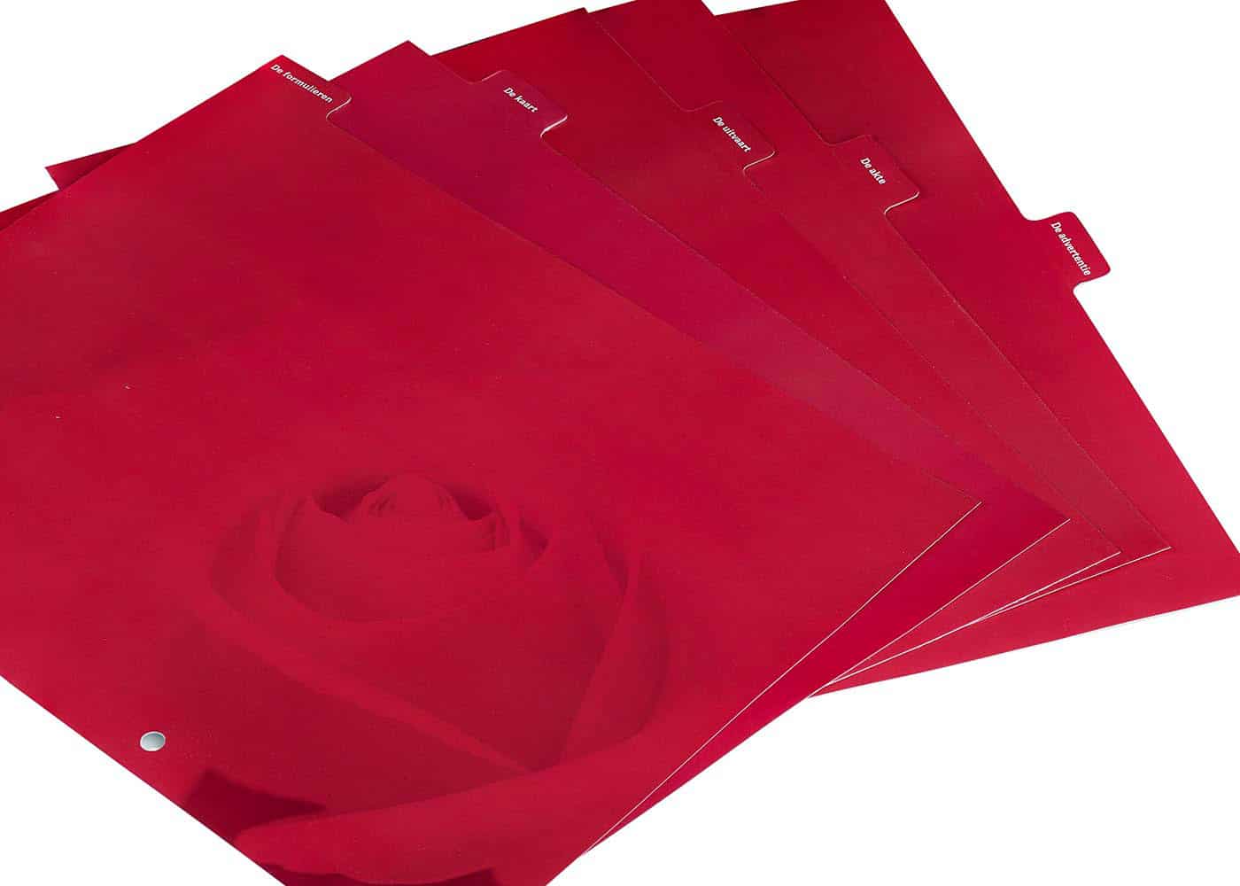 Natürlich gehört zu einem schönen Ringbuch nach Maß ein Registerkarten-Set im gleichen Stil. Bei Venttri bestimmen Sie selbst das Material, die Anzahl Registerkarten, die Form der Registerkarten und den Druck.